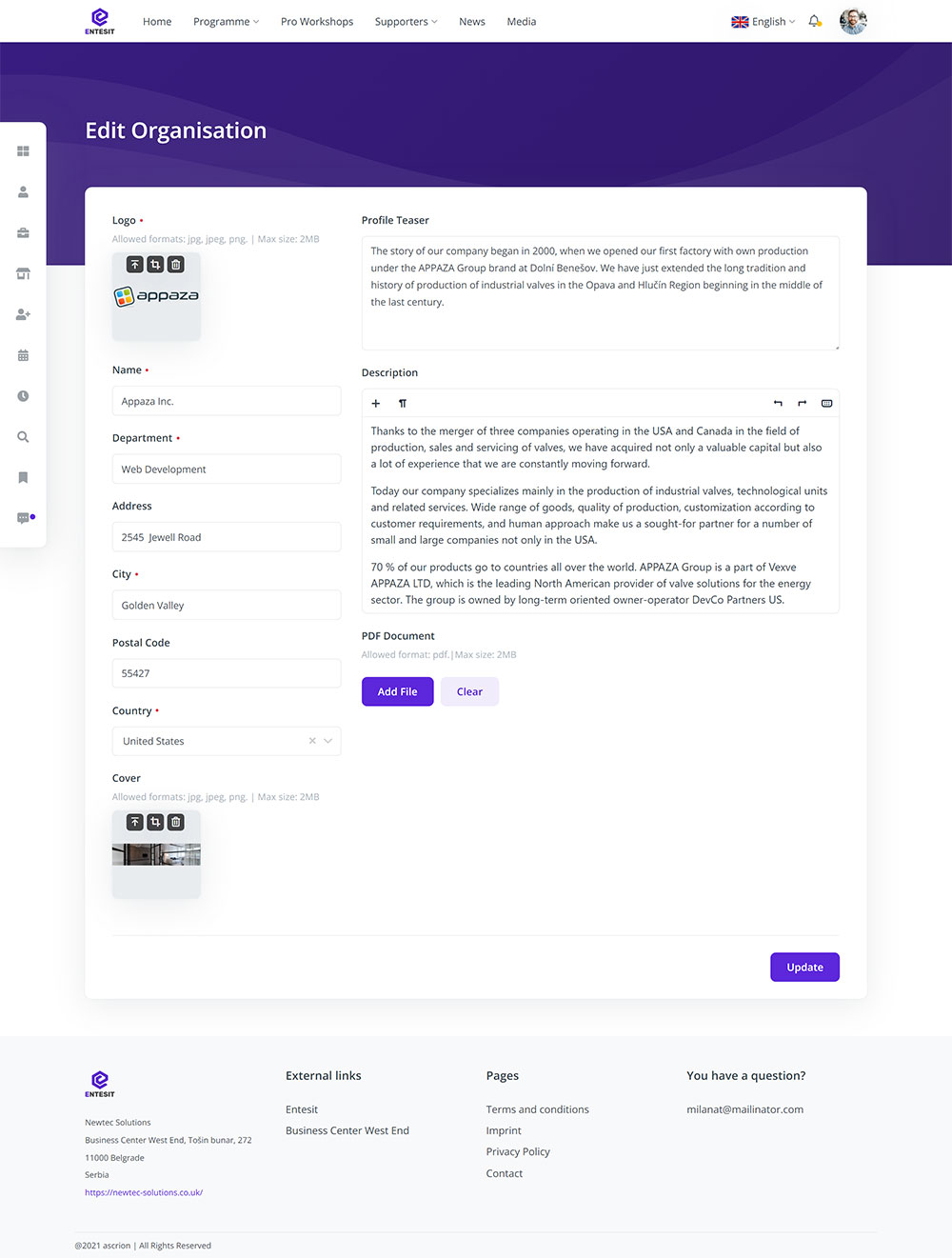 Jednostavna i brza registracija i uređivanje profila učesnika i organizacije
