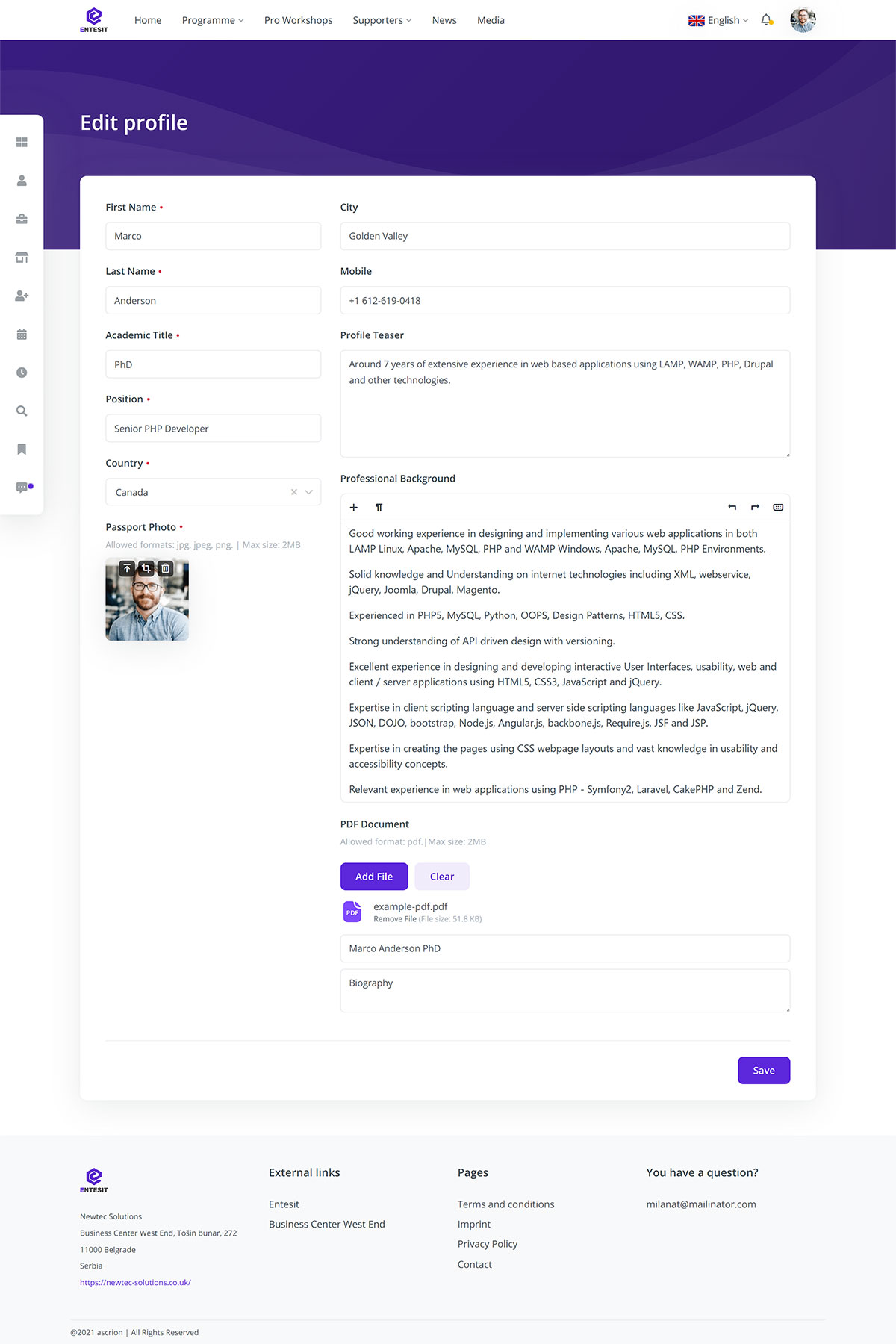 Pomoću našeg savremenog i jednostavnog korisničkog interfejsa učesnici se mogu registrovati i uređivati profile za vaš događaj na veoma jednostavan i brz način.