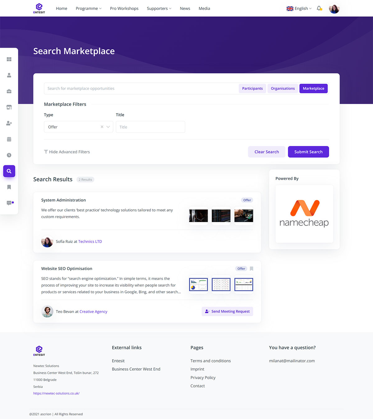 Organizator ima opciju da definiše koje sve vrste kooperativnih profila mogu da se prave na platformi (ponude, potražnje, ideje...) i da definiše potrebne informacije za profil. Kooperativne profile je moguće posebno pretraživati.